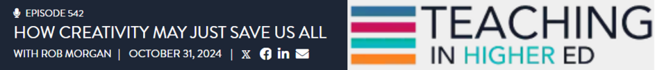 Interviewed by Bonni Stachowiak on her Teaching in Higher Ed Podcast about the importance of teaching creative intelligences.